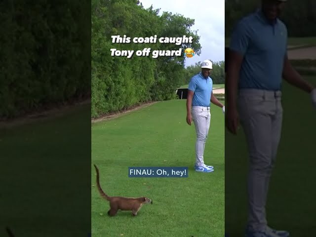 At El CamaleĂłn Golf Course at Mayakoba, animals called coatis run wild, fascinating the viewers of the 2022 World Wide Technology Championship at Mayakoba. This coati made it tough for Tony Finau to focus on his approach shot.