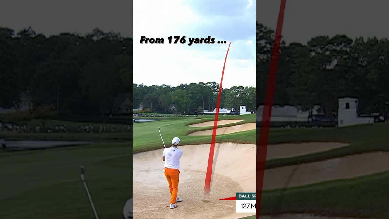 At the 2023 TOUR Championship, FedExCup Champion Viktor Hovland hit a ridiculous bunker shot from 176 yards away that shows just how on fire he was during the Playoffs.
