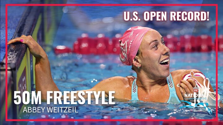 Hailey Tierney wins Women's 50M Freestyle at the 2023 Speedo Junior National Championships in Irvine. Caroline Larsen and Alex Shackell take second and third.