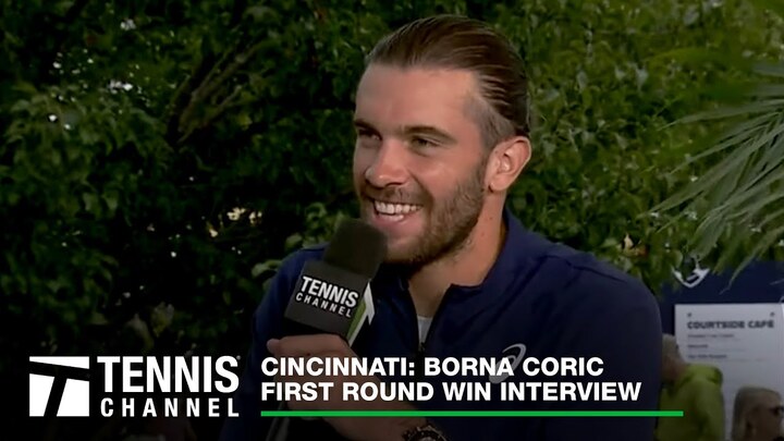 Borna Coric (CRO) speaks with Tennis Channel after defeating Sebastian Korda (USA) in the first round of 2023 Cincinnati.