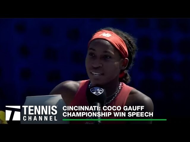 Coco Gauff (USA) speaks following her win over Karolina Muchova (CZE) in the Western & Southern Open final.
