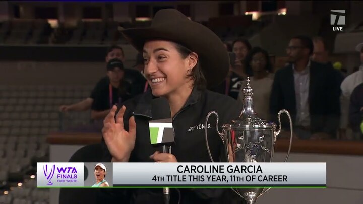 Caroline Garcia (FRA) speaks with Tennis Channel following her 2022 WTA Finals Championship