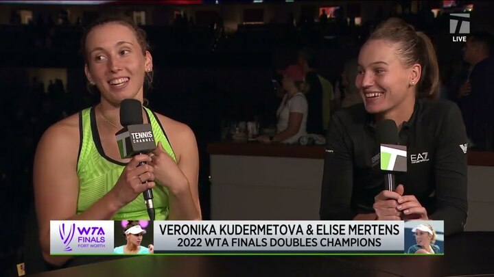 Veronika Kudermetova (RUS) and Elise Mertens (BEL) speak with Tennis Channel following their 2022 WTA Finals Championship