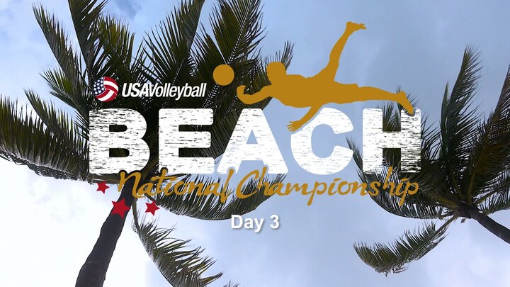 Day 3 of the 2023 USA Volleyball Beach National Championship is in the books! We saw our first championship match, the Boys 16U Open gold medal match. Catch up on some of the action from day 3!