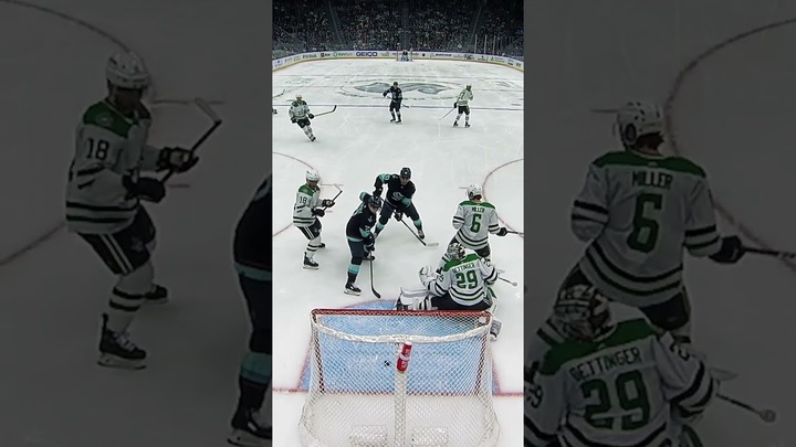 Matty Beniers and then Jordan Eberle each get a piece of the puck on a point-shot from Vince Dunn, scoring a unique "double deflection" goal for the Seattle Kraken.