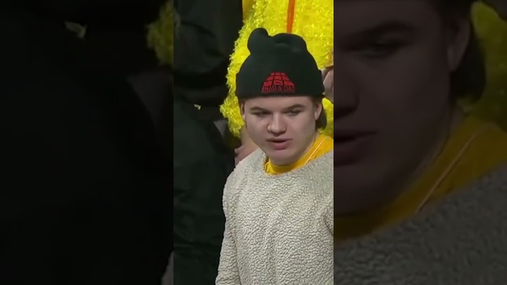 Check out the student section at the Rutgers Scarlet Knights' vs, The Minnesota Golden Gophers game. The penguin and chicken got free pizza!