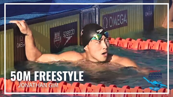 Jonathan Gim wins Men's 50M Freestyle at the 2023 Speedo Junior National Championships in Irvine. Jack Madoch and Henry McFadden take second and third.