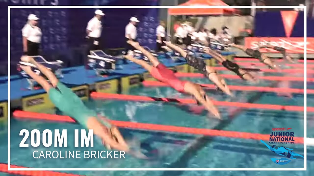 Caroline Bricker wins Women's 200M Individual Medley at the 2023 Speedo Junior National Championships in Irvine. Teagan O'Dell and Elle Scott take second and third.