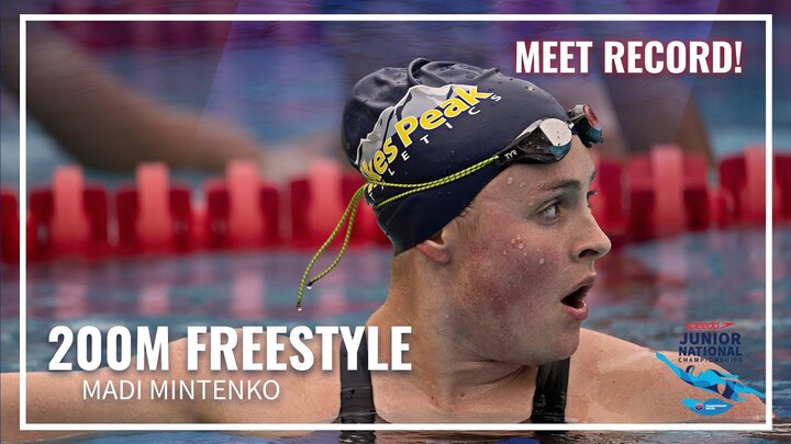 Madi Mintenko wins Women's 200M Freestyle at the 2023 Speedo Junior National Championships in Irvine. Bailey Hartman and Cavan Gormsen take second and third.