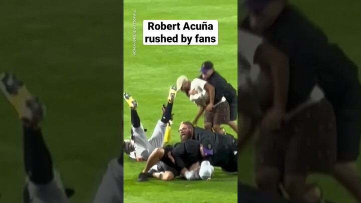 Fans rushed Robert Acuña in the middle of the game and it takes many security guards to physically remove them from the field.