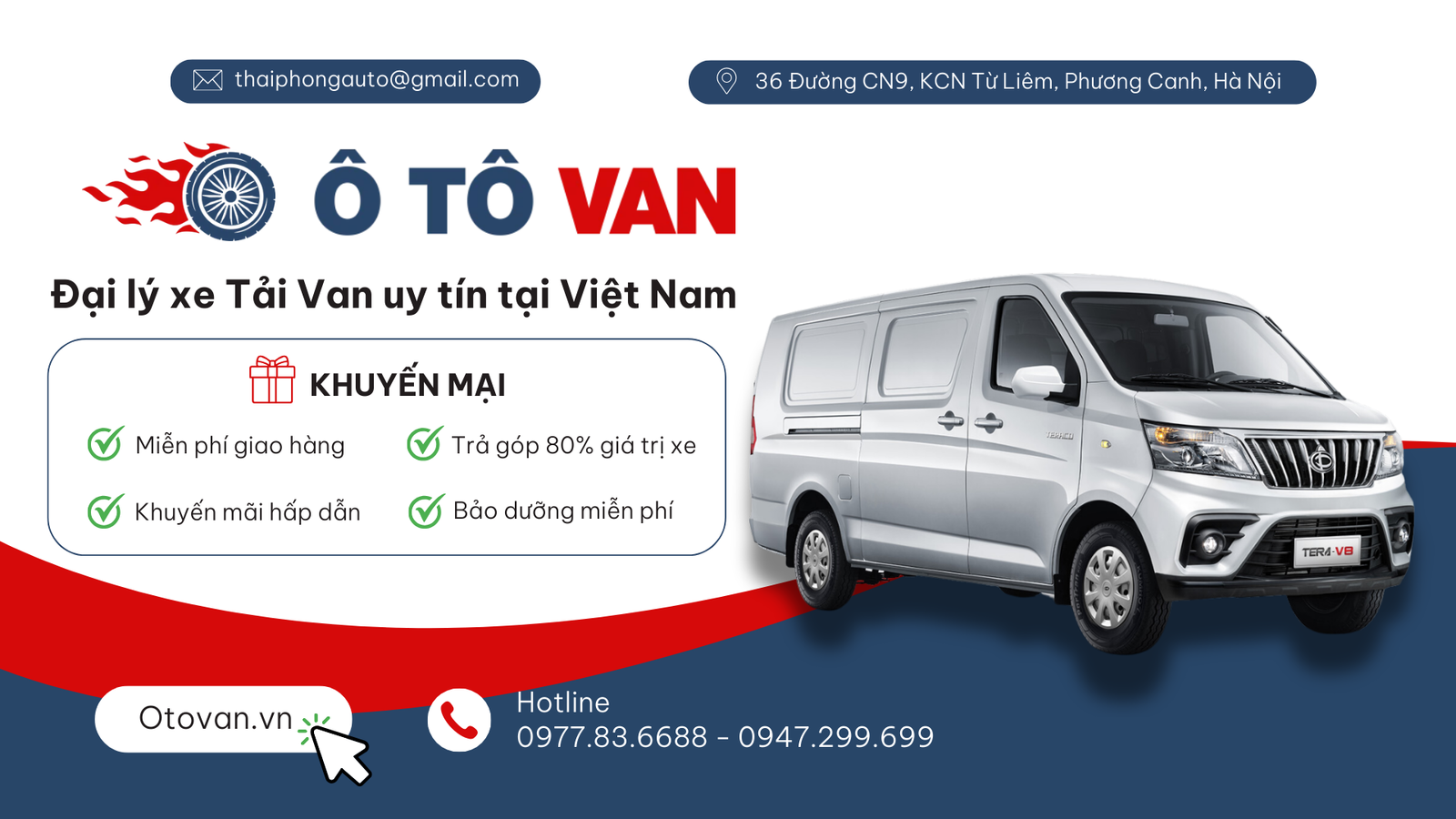 Tại Ô Tô Thái Phong, tài chính không còn là rào cản! Chúng tôi cung cấp chính sách trả góp lên đến 80% giá trị xe với tỷ lệ duyệt cao, giúp bạn sở hữu xe tải van dễ dàng hơn bao giờ hết.